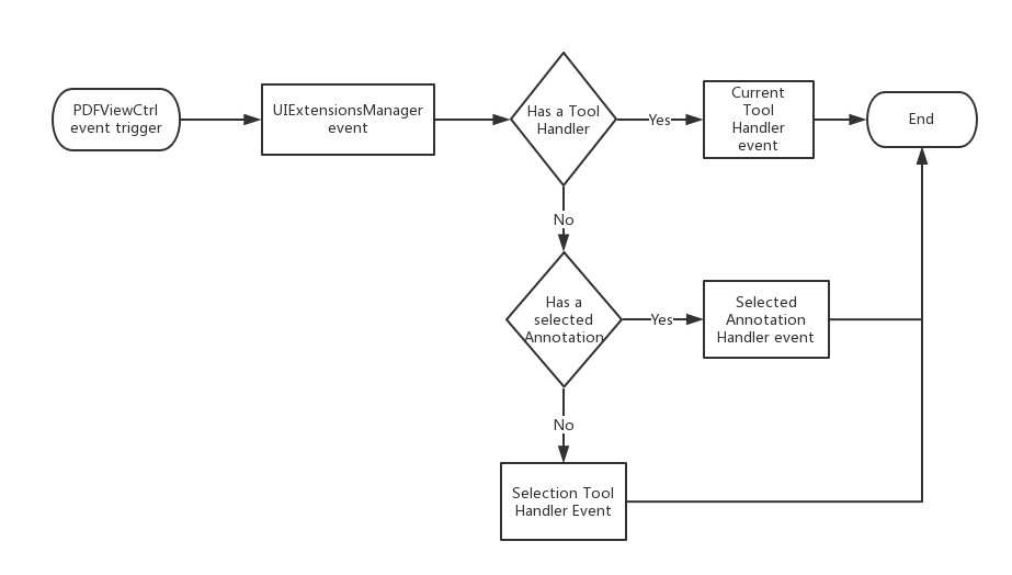 If a tool handler exists currently, UIExtensionsManager will send the corresponding events to the current tool handler, and then event-handing process ends.
