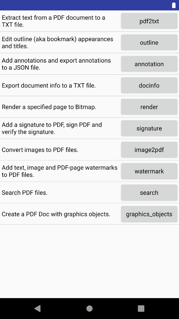 Main Frame of Foxit PDF SDK for Android