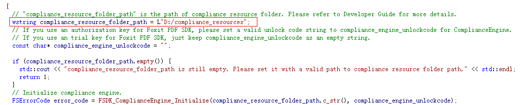 For ocr and compliance demos, you should build a resource directory at first, please contact Foxit support team or sales team to get the resource files packages. For more details about how to run the demos, please refer to section 3.33 “OCR” and section 3.34 “Compliance”.