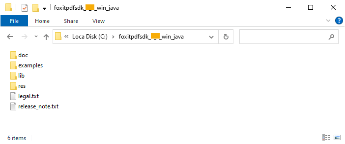 Package for Windows Java is named “foxitpdfsdk_9_1_win_java.zip”, package for Linux x86/x64 Java is named “foxitpdfsdk_9_1_linux_java.zip”, package for Linux armv7/armv8 Java is named “foxitpdfsdk_9_1_linux_arm_java.zip”, package for Mac x64 Java is named “foxitpdfsdk_9_1_mac_java.zip” and package for Mac arm64 Java is named “foxitpdfsdk_9_1_mac_arm64_java.zip”. They have the similar structure, so in this guide mainly introduce “foxitpdfsdk_9_1_win_java.zip” as an example.
