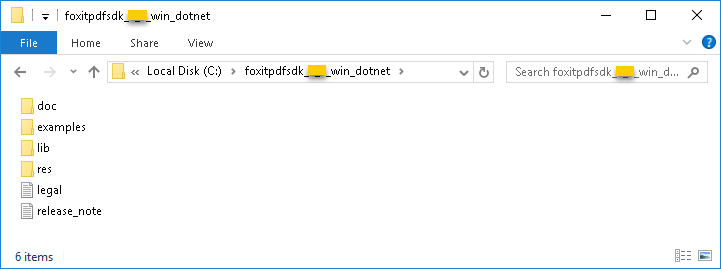Download the Foxit PDF SDK zip for .NET package and extract it to a new directory “foxitpdfsdk_9_1_win_dotnet”, which is shown in Figure 2-1.